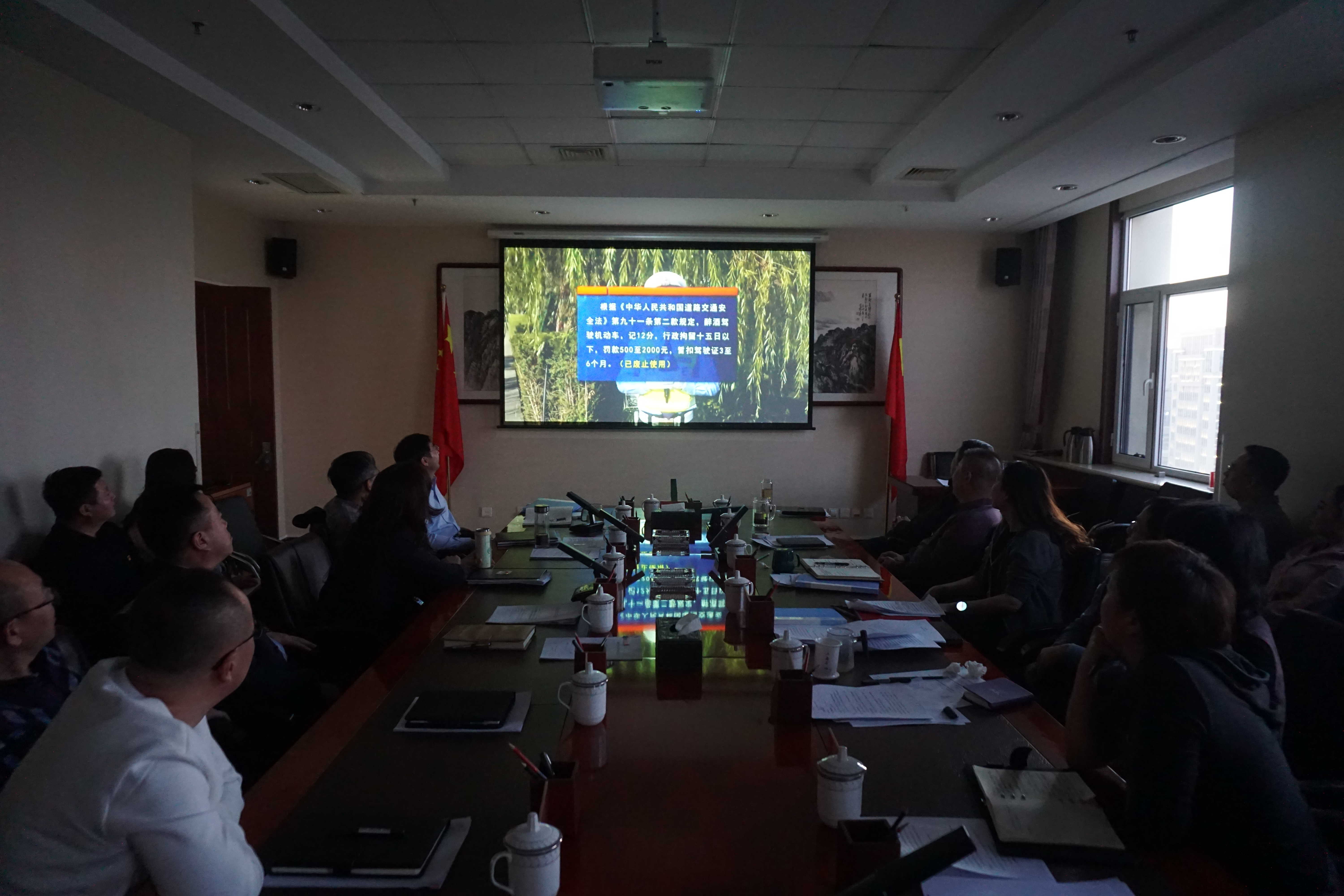 参会人员集中观看警示教育片《拒绝酒驾 平安回家》,外办全体人员参加会议。